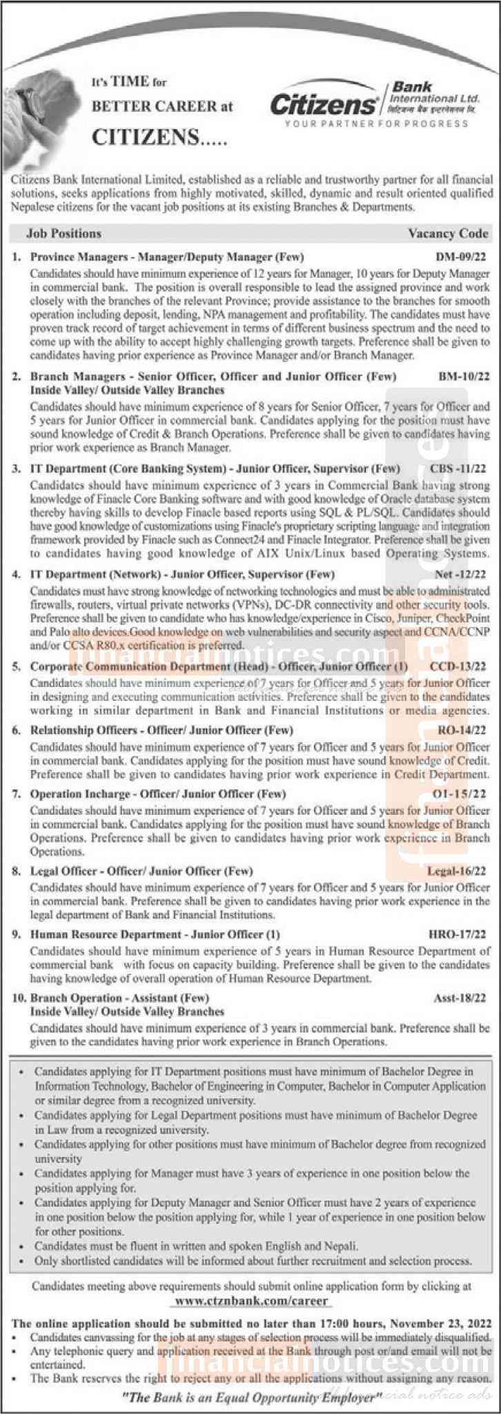 सिटिजन्स बैंकमा जागिर खुल्यो