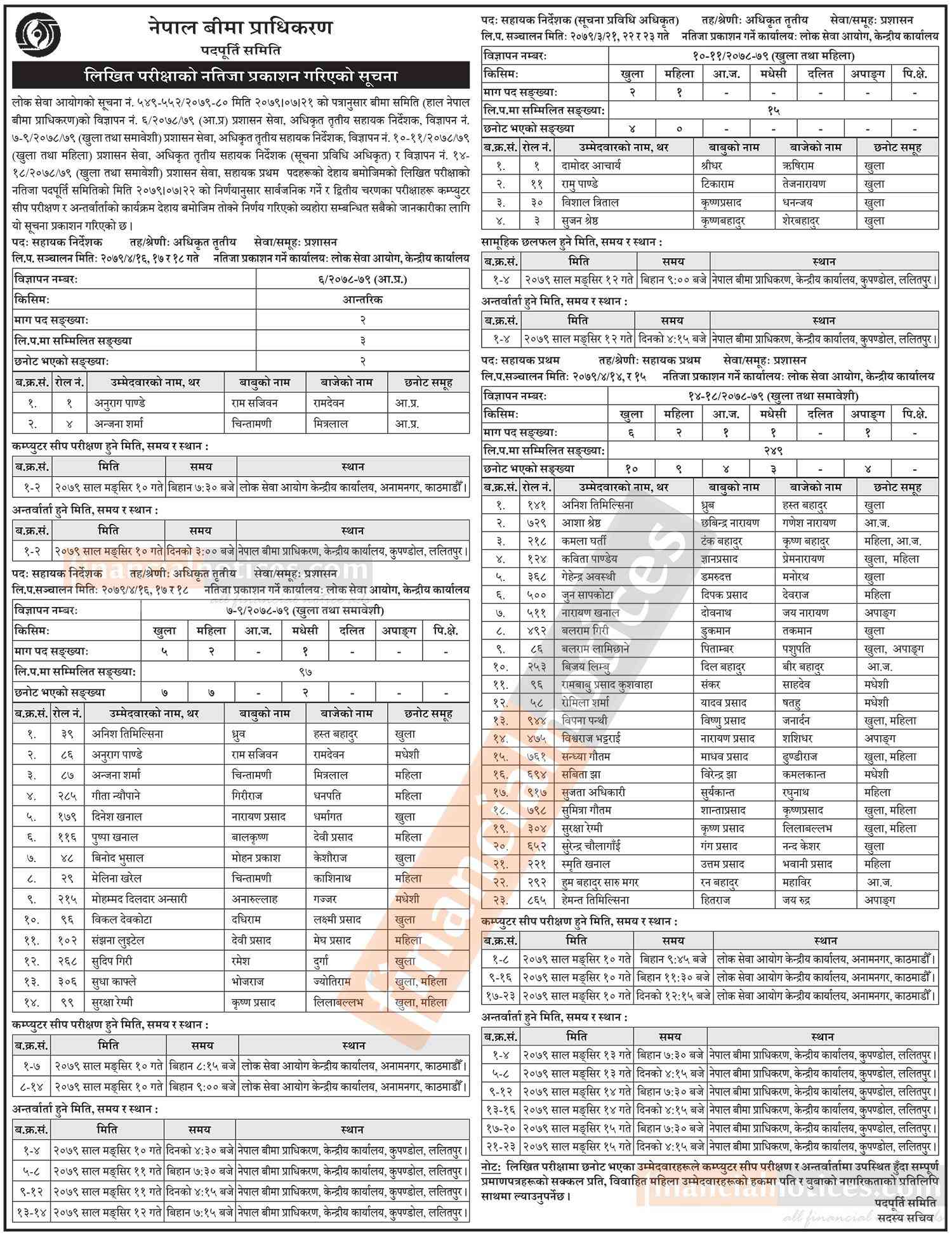 नेपाल बीमा प्रधिकरणको लिखित परिक्षाको नतिजा प्रकाशन सम्बन्धी सूचना