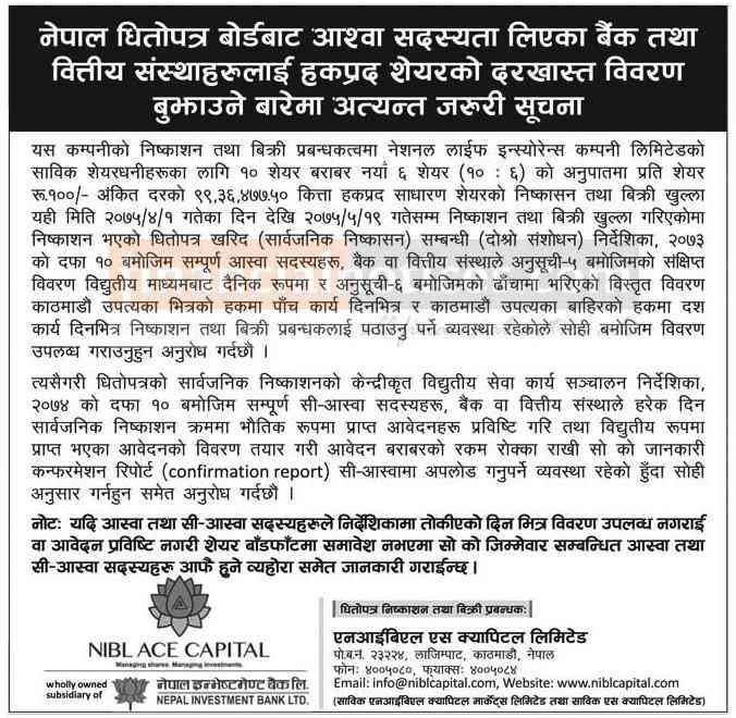 हकप्रद सेयरको दरखास्त विवरण बुझाउनेबारे सूचना