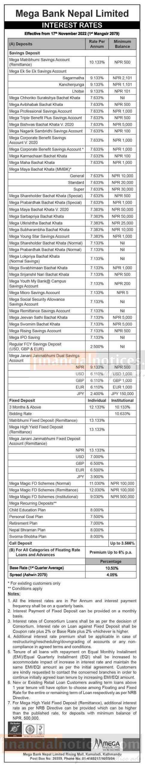 मेगा बैंकको नयाँ ब्याजदर सार्वजानिक, हेर्नुहोस् कुन खातामा कति पुग्यो ?