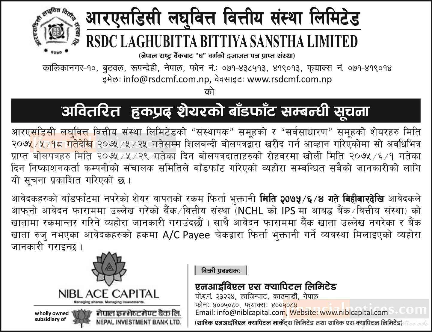 अवितरित हकप्रद सेयर बाँडफाँट सम्बिन्धी सूचना