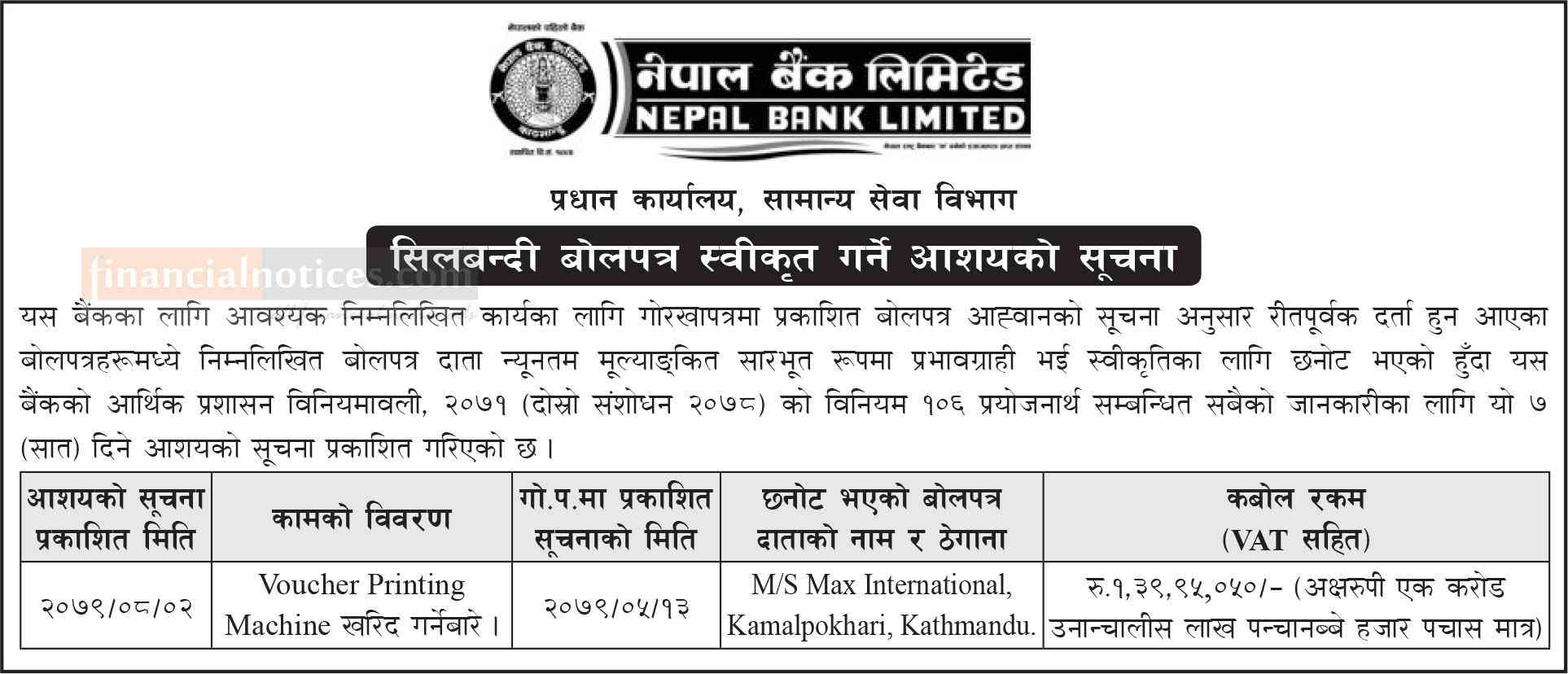 Published by Nepal Bank Limited on 2079-8-02