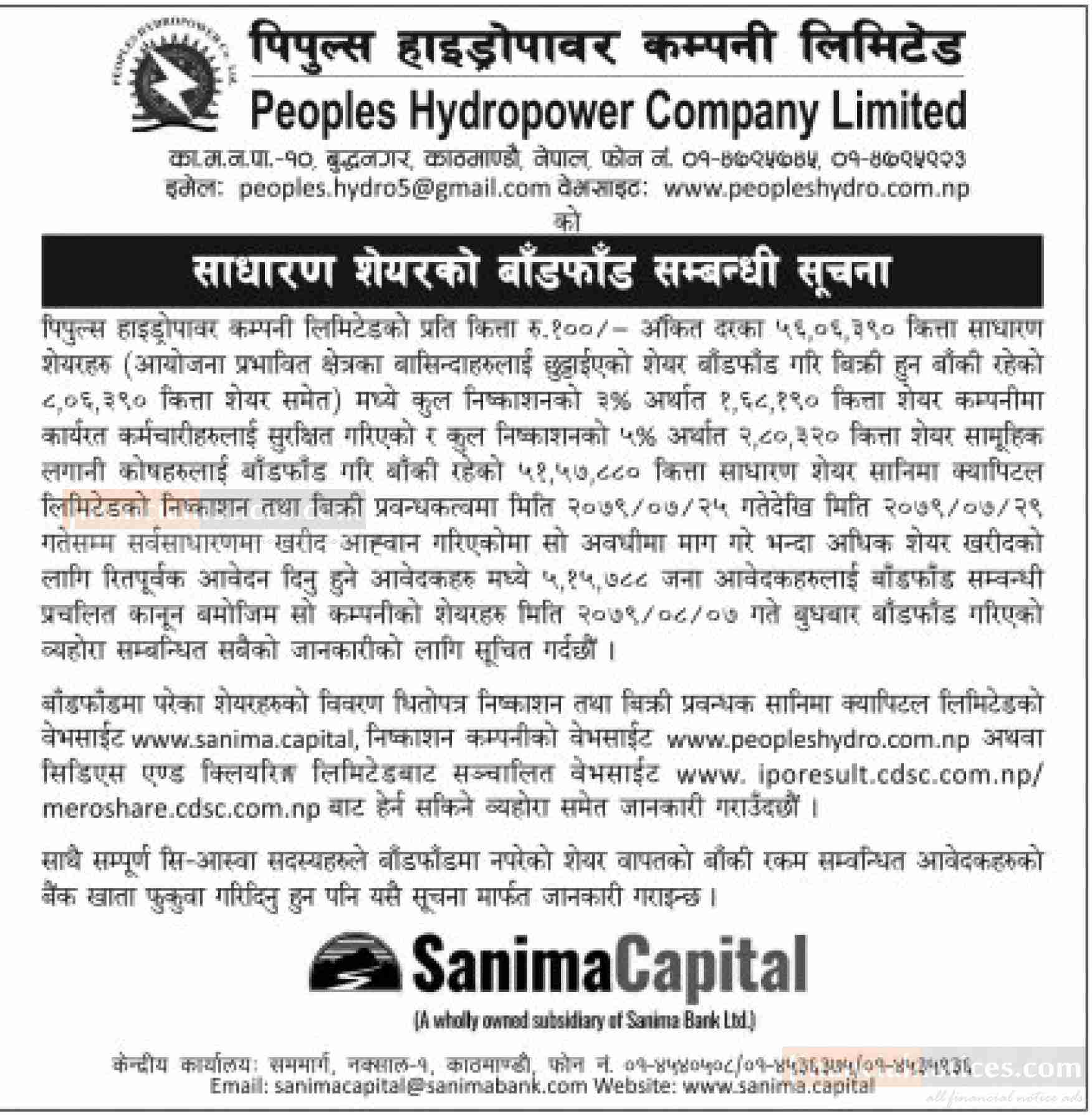 पिपुल्स हाइड्रोपावरको IPO बाँडफाँड सम्बन्धी सूचना