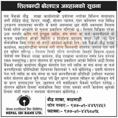 Nepal SBI Bank: Auction Notice for Non-Banking Assets at Geta-2, Kailali