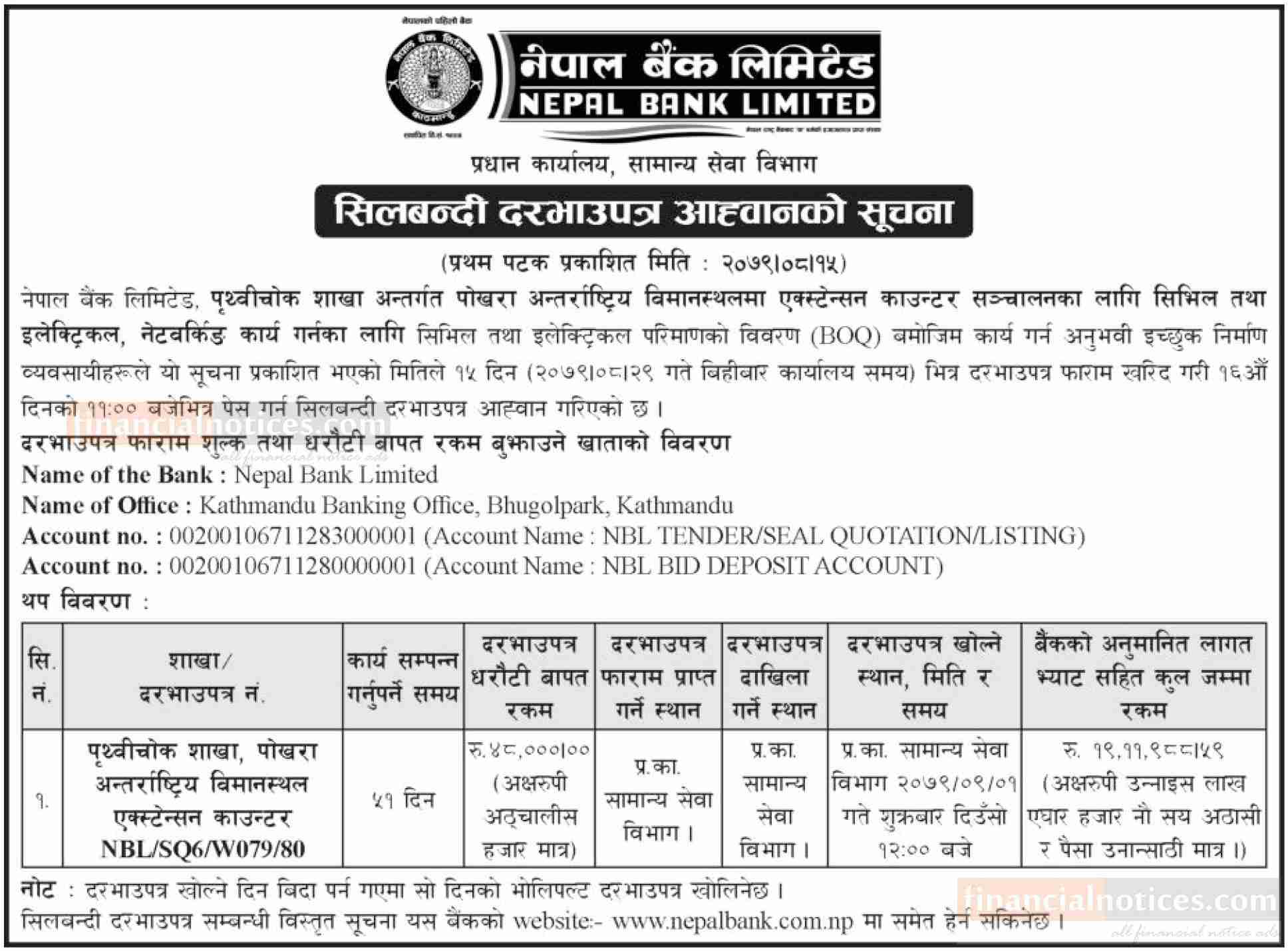 शिलबन्दी बोलपत्र आव्हानको सूचना