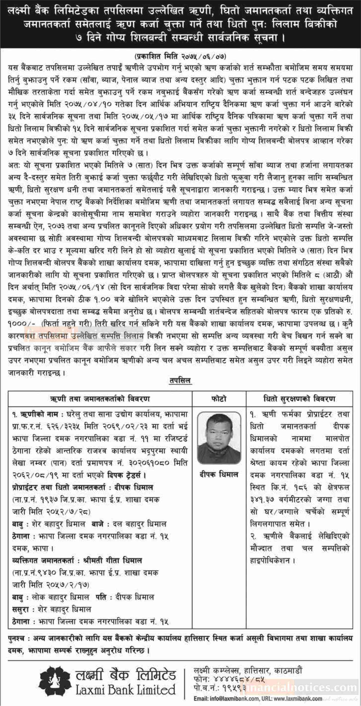 Published by Laxmi Sunrise Bank Limited Abhiyan Newspaper on 2075-6-07