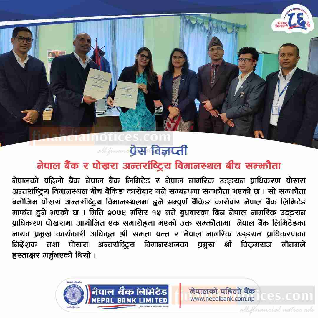 नेपाल बैंक र पोखरा अन्तर्राष्ट्रिय विमानस्थल बीच सम्झौता सम्बन्धी सूचना