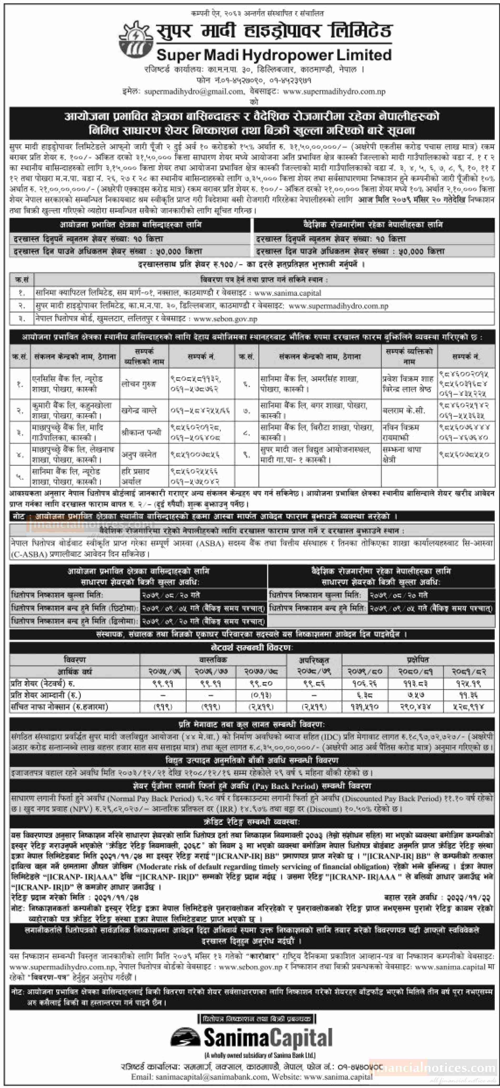 सुपर मादी हाइड्रोको आईपीओ आायोजना प्रभावित तथा वैदेशिक रोजगारीमा गएकाले पनि भर्न सक्ने बारे सूचना