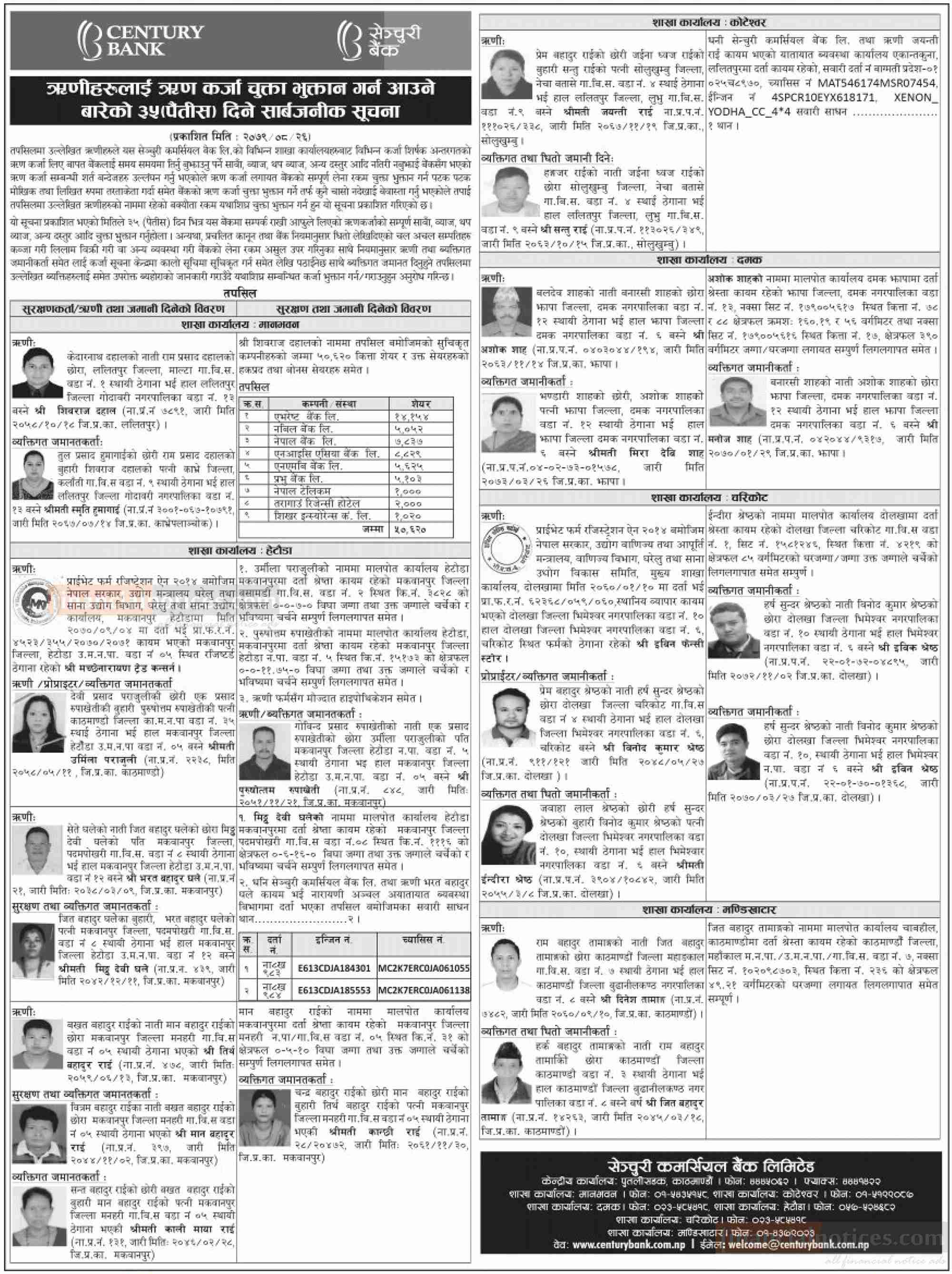 कर्जा चुक्ता गर्ने बारे ३५ दिने सूचना