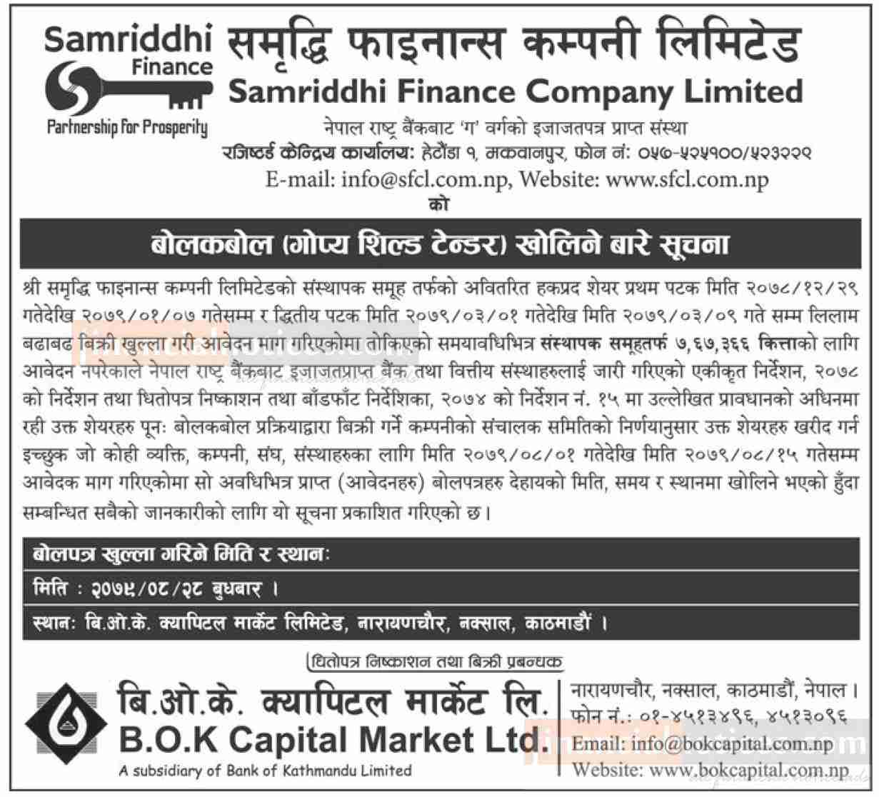 बोलकबोल (गोप्य शिल्ड टेन्डर) खोलिने बारेको सूचना