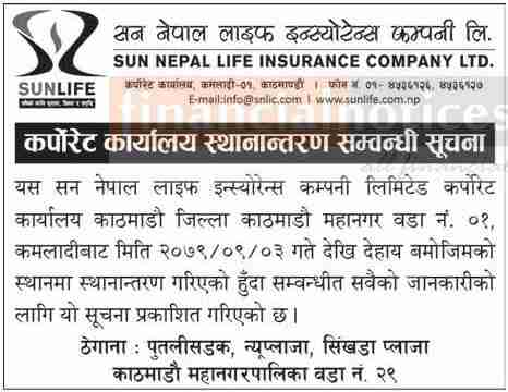 कर्पाेरेट कार्यालय स्थानान्तरण सूचना