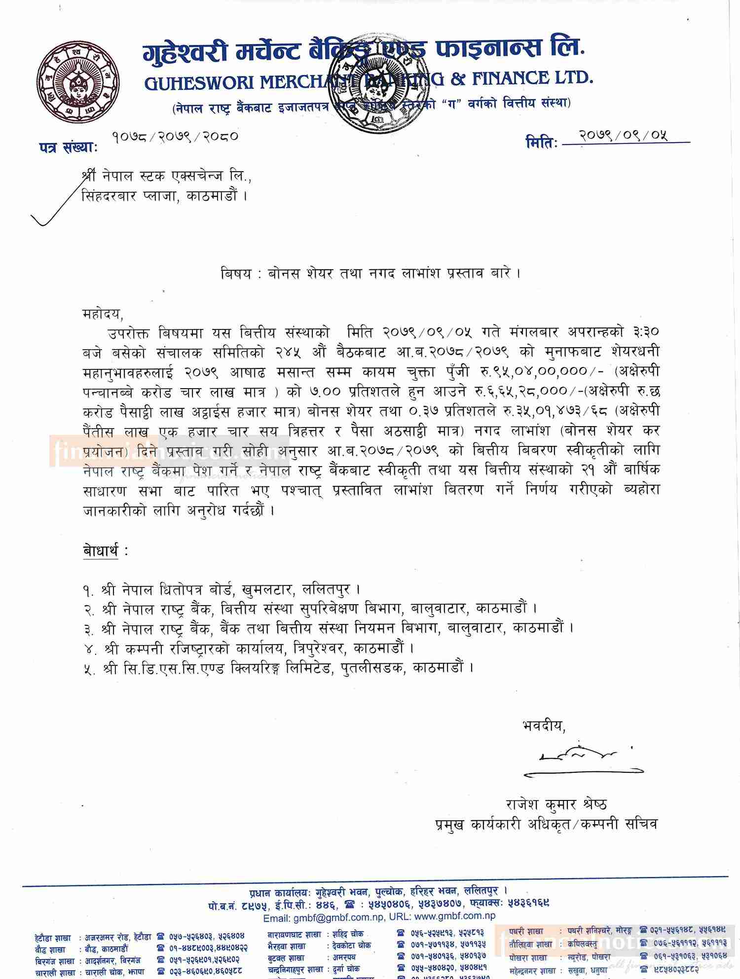 गुहेश्वरी मर्चेन्टको लाभांश रुपमा बोनस घोषणा सम्बन्धी सूचना