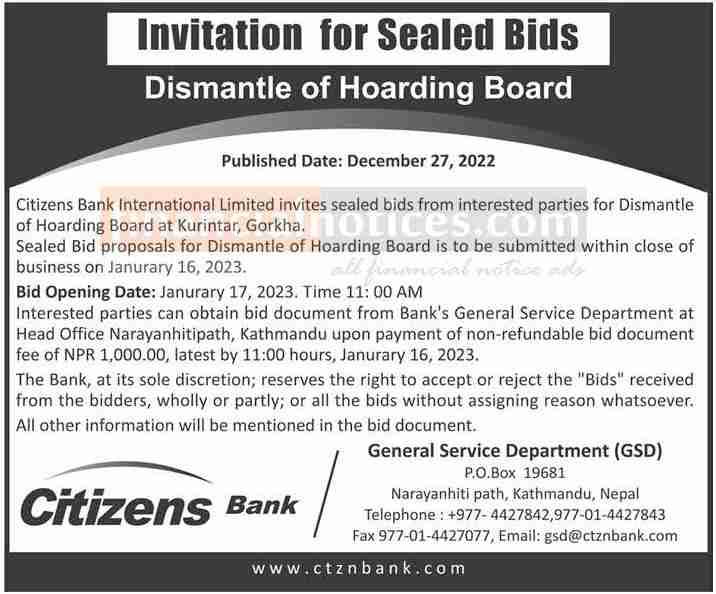 Invitation for sealed bid notice