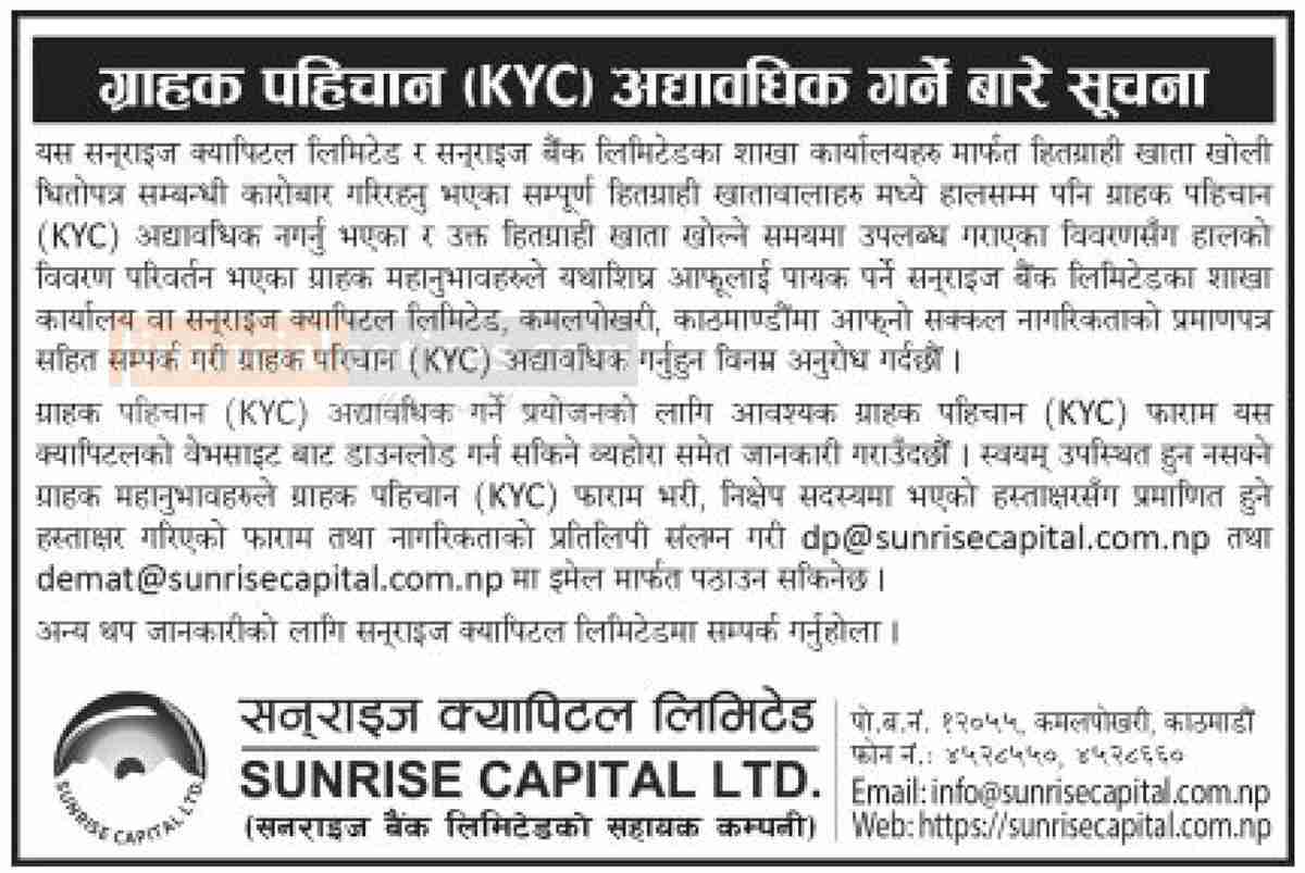 ग्राहाक पहिचान (KYC) अद्यावधिक गर्ने सम्बन्धी सूचना