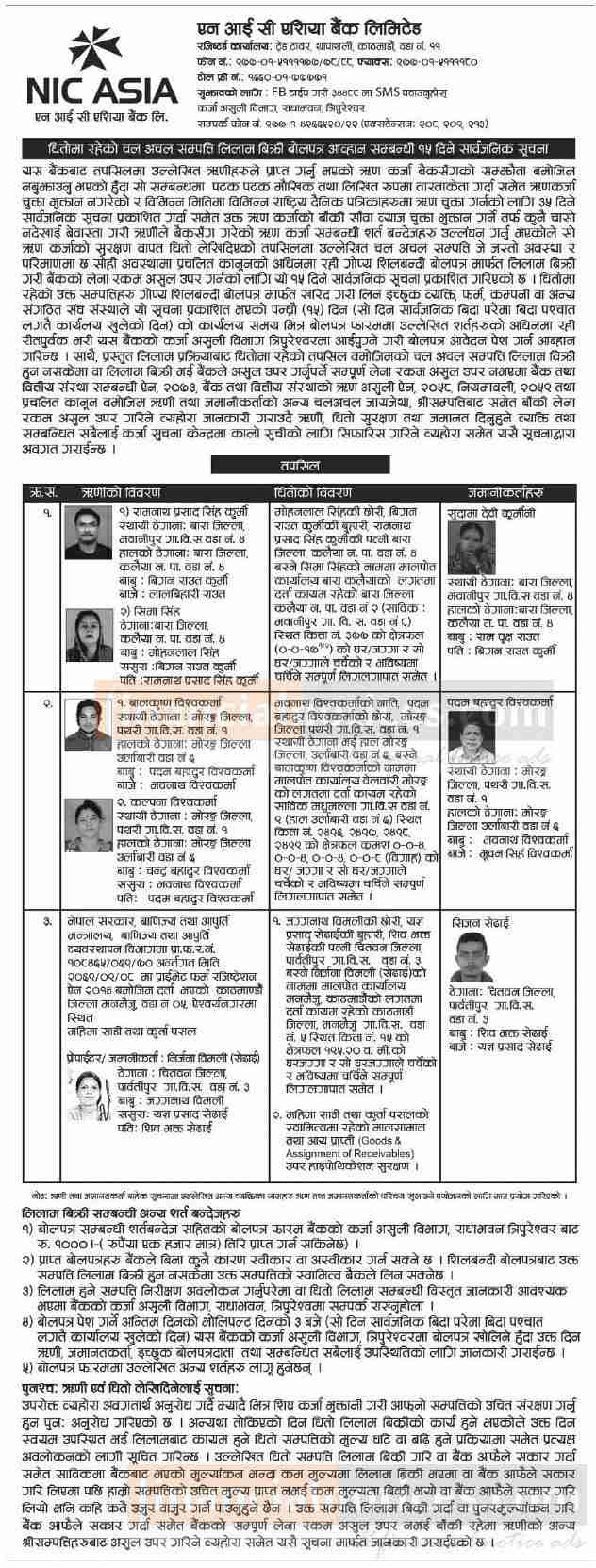 Kumari Bank Auction Notice for Non-Banking Assets at Mahendranagar, Kanchanpur -