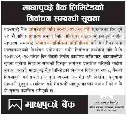 माछापुच्छ्रे बैंकको निर्वाचन सम्बन्धी सूचना