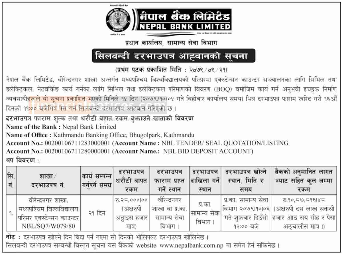 Published by Nepal Bank Limited on 2079-9-21