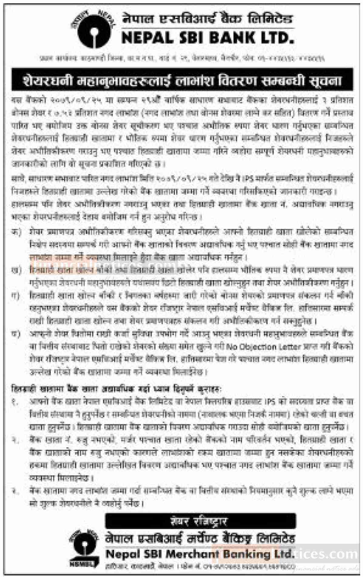 शेयरधनीहरुलाई लाभांस वितरण सम्बन्धी सूचना