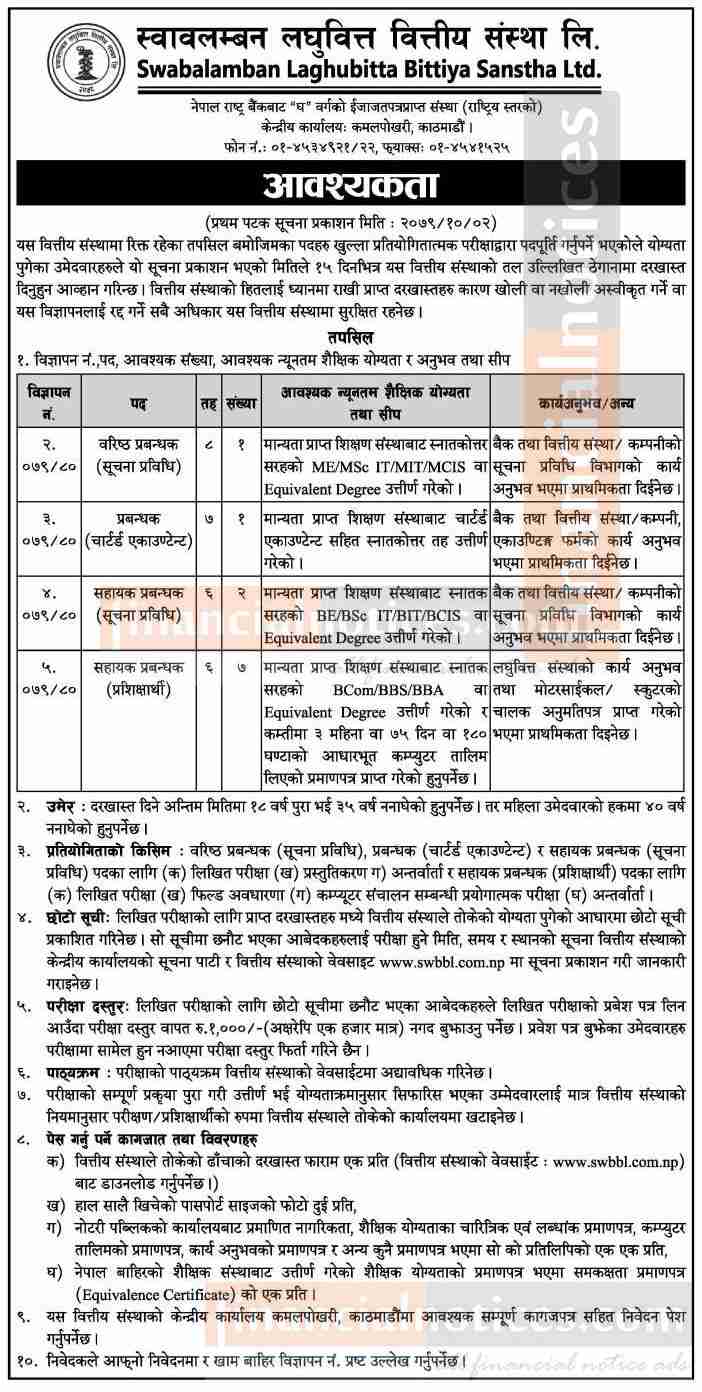 लघुवित्तमा कर्मचारी आवश्यकता - Job Vacancy -