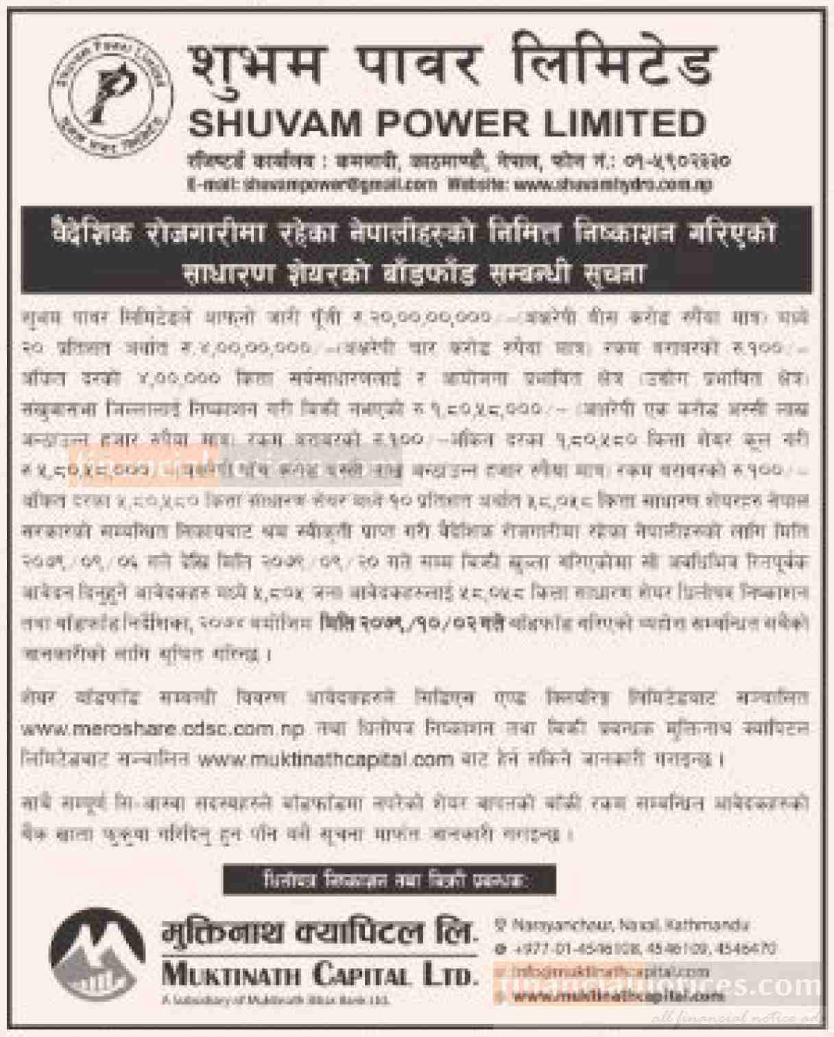 शुभम पावरको आईपीओ बाँडफाँड सम्बन्धी सूचना
