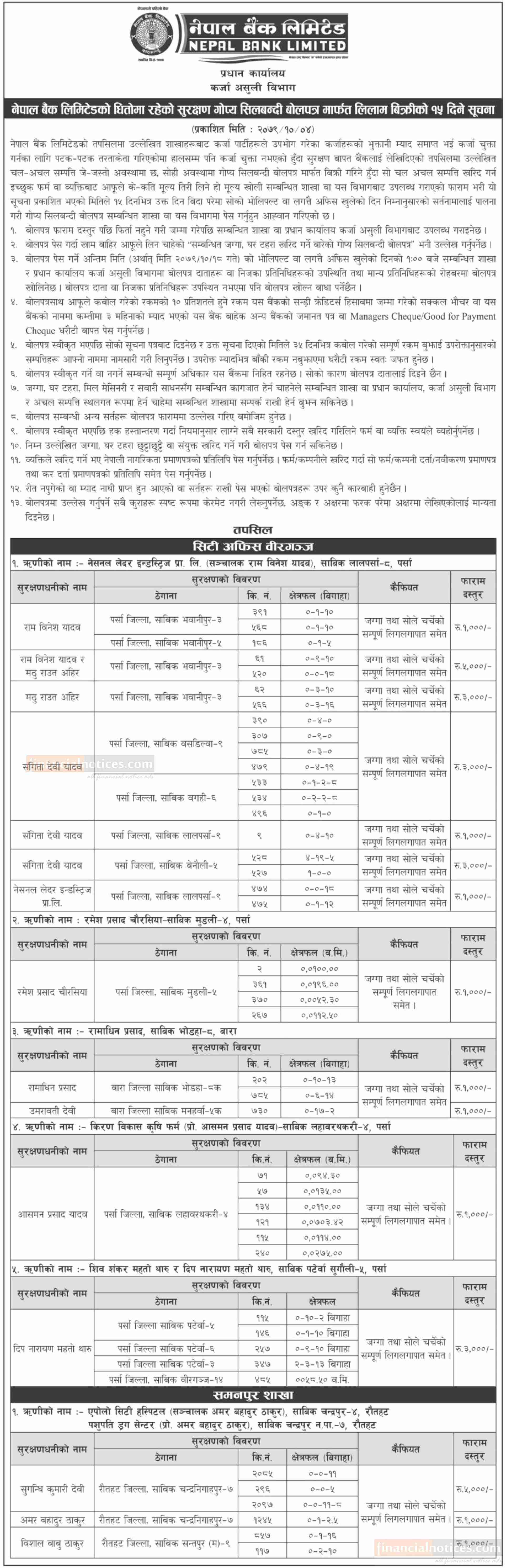 धितो सुरक्षणमा रहेको सम्पत्ति लिलाम बिक्री गर्ने बारेको सूचना
