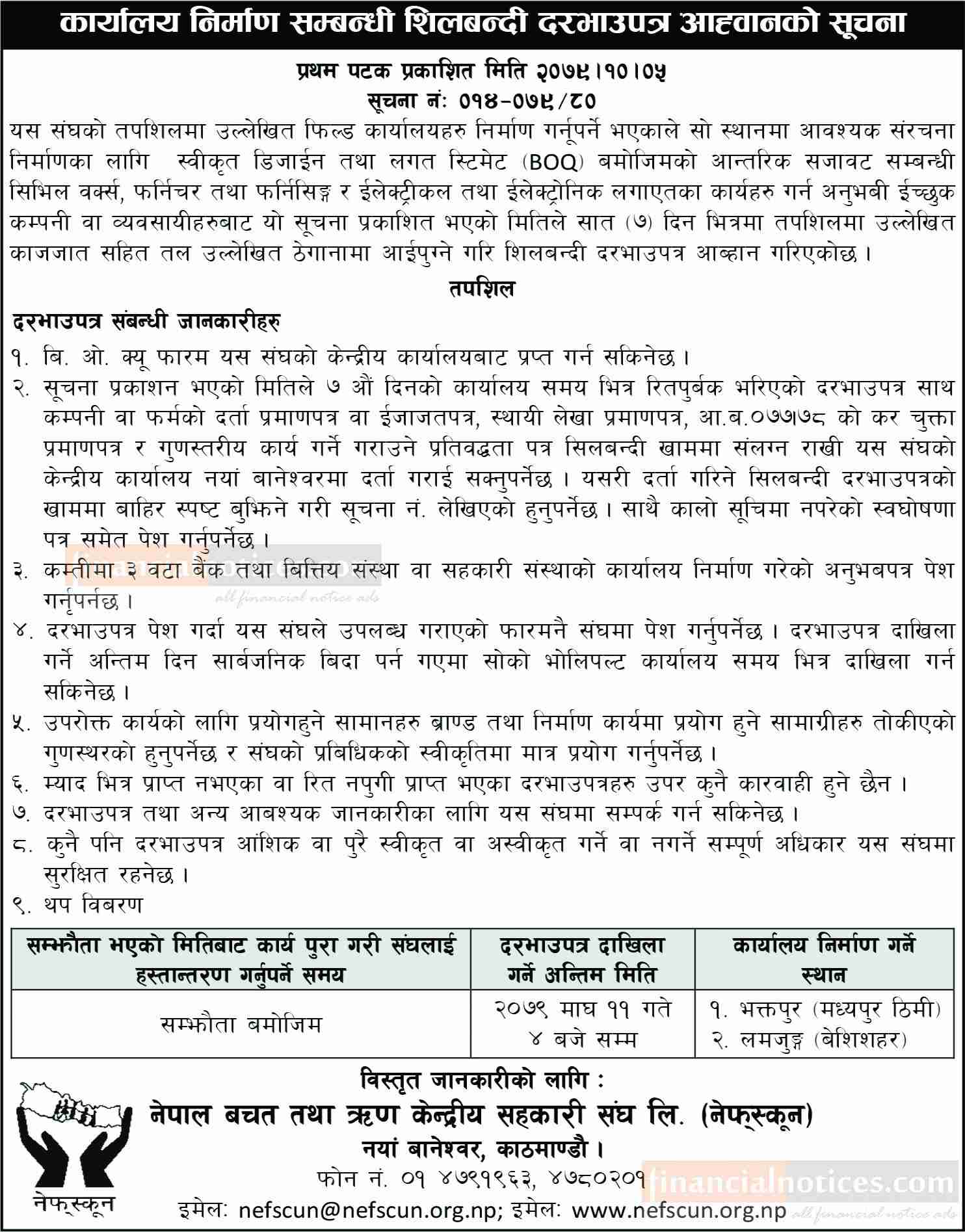 कार्यालय निर्माण सम्बन्धी शिलबन्दी दरभाउपत्र आह्वानको सूचना