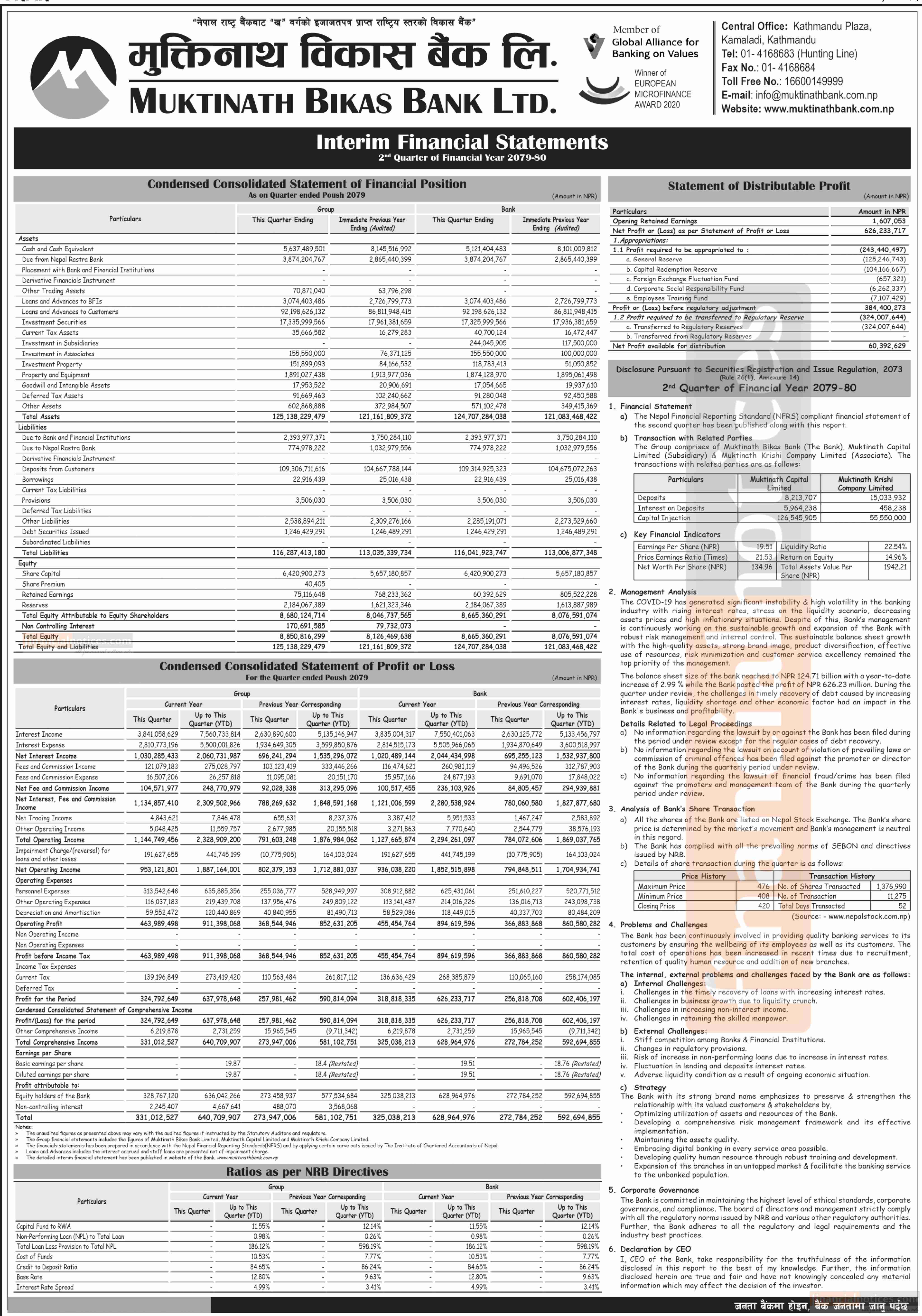मुक्तिनाथ विकास बैंकको खुद नाफा ६२ करोड ६२ लाख रुपैयाँ