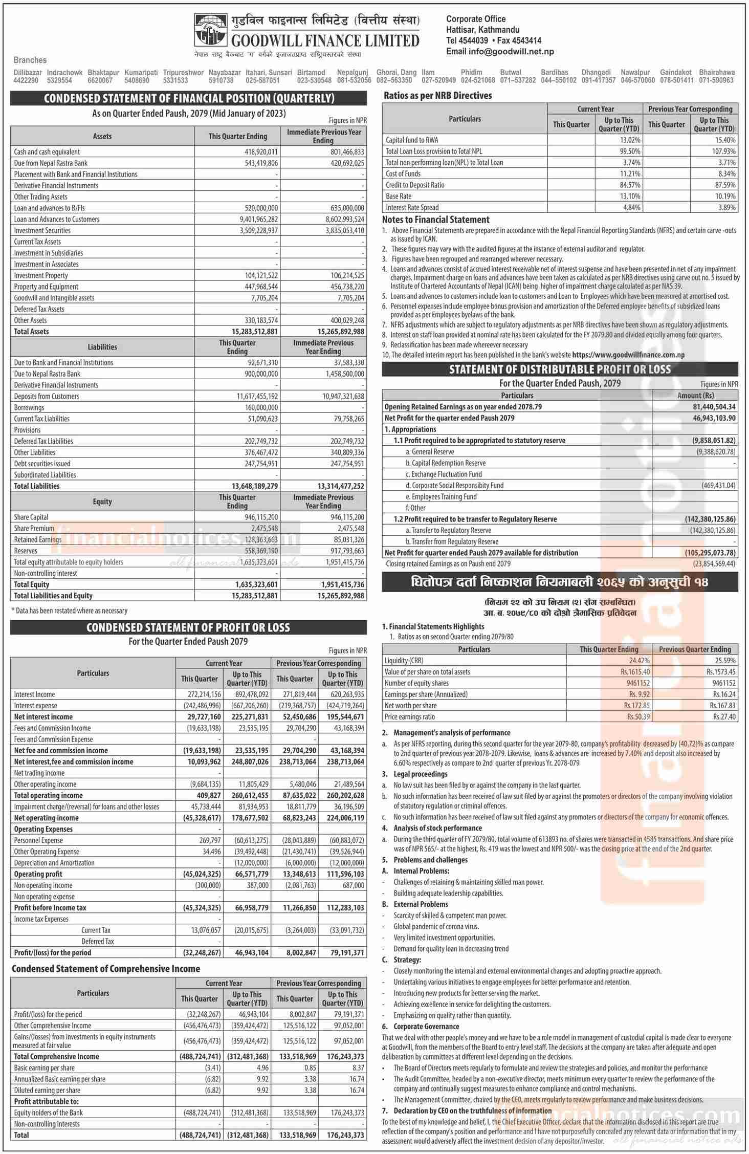 गुडवील फाइनान्सको दोस्रो त्रैमाससम्ममा खुद नाफा रू. ४ करोड ६९ लाख