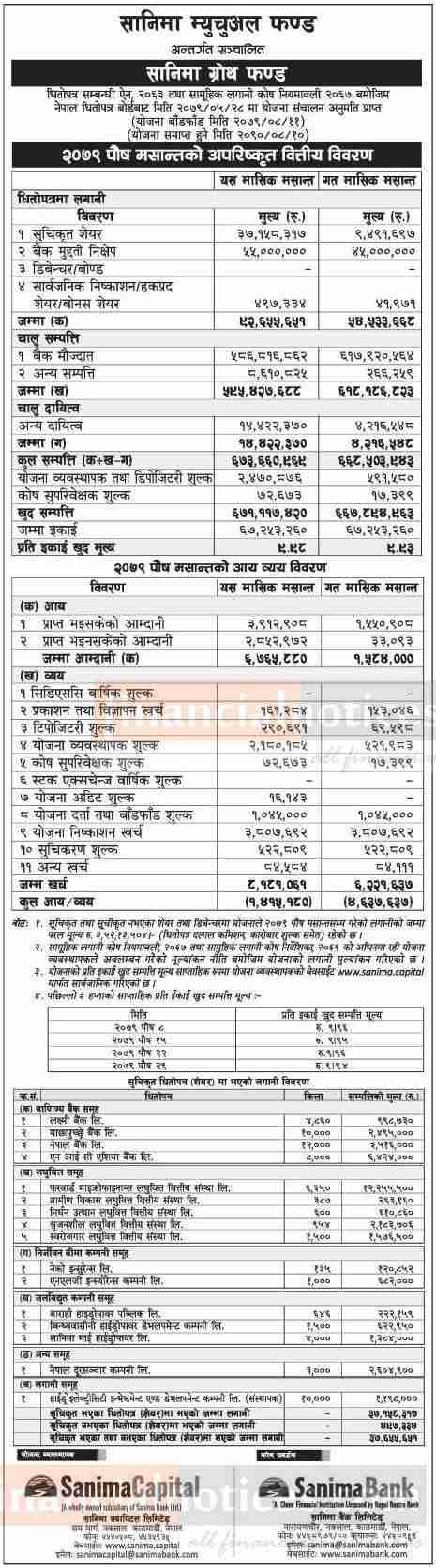 Sanima Capital has published “Sanima Growth Fund” Net Asset Value till Poush, 2079