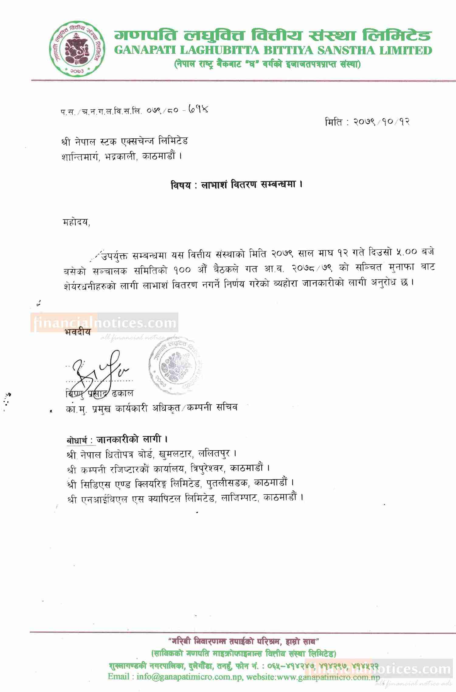 गणपति लघुवित्तले यस बर्ष लाभांश नदिने बारे सूचना