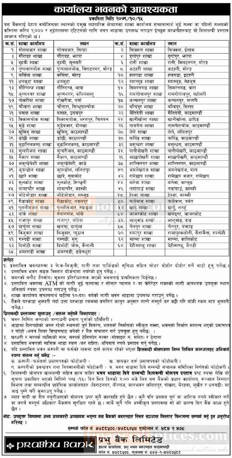 बैंकको लागि विभिन्न ठाउँमा कार्यालय भवनको आवश्यकता