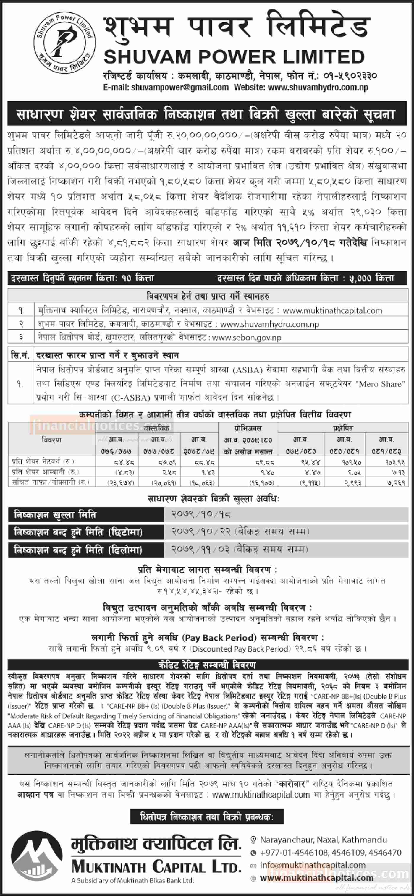 शुभम् पावरको आइपीओ आजबाट बिक्री खुला सम्बन्धी सूचना