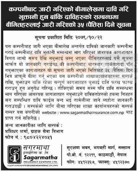 Published by Sagarmatha Lumbini Insurance (SALICO) on 2079-10-22