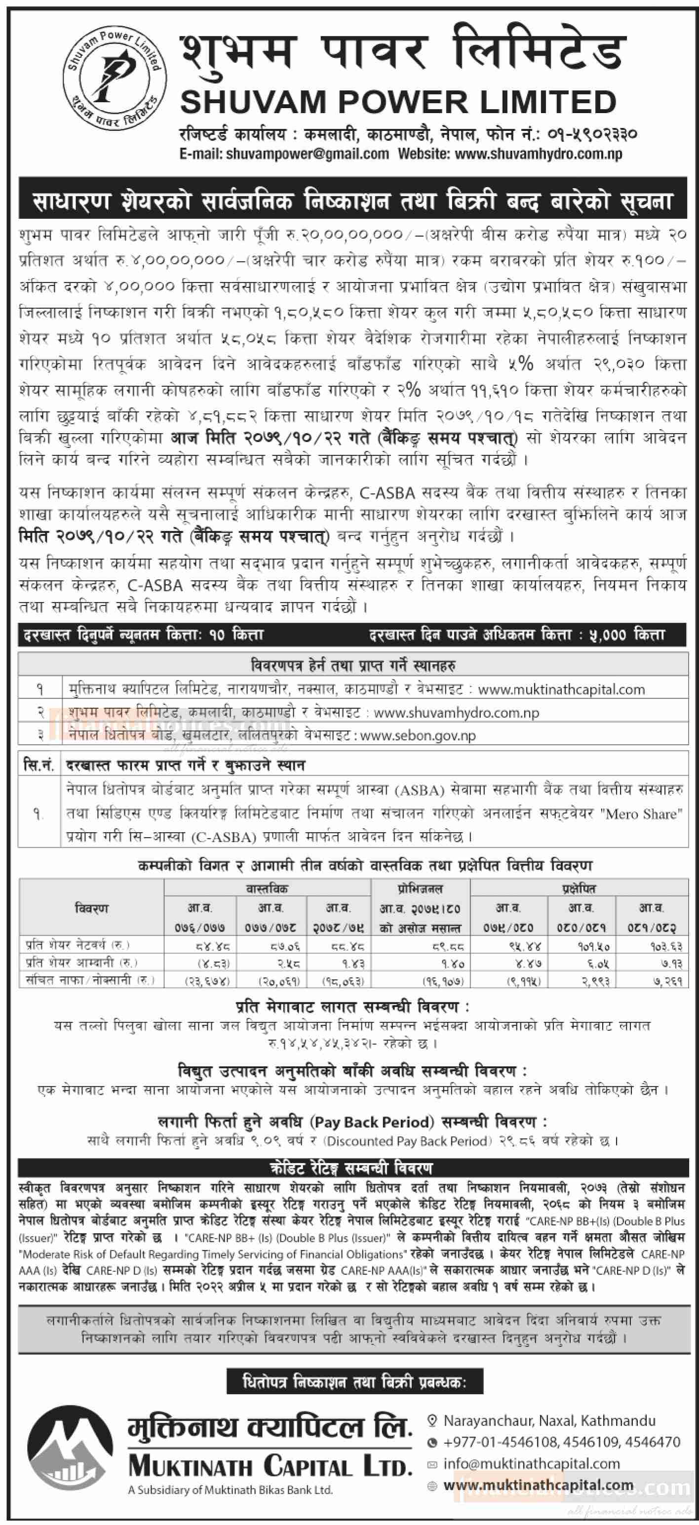 शुभम पावरको आईपीओमा आवेदन दिने आज अन्तिम दिन रहेको सम्बन्धी सूचना