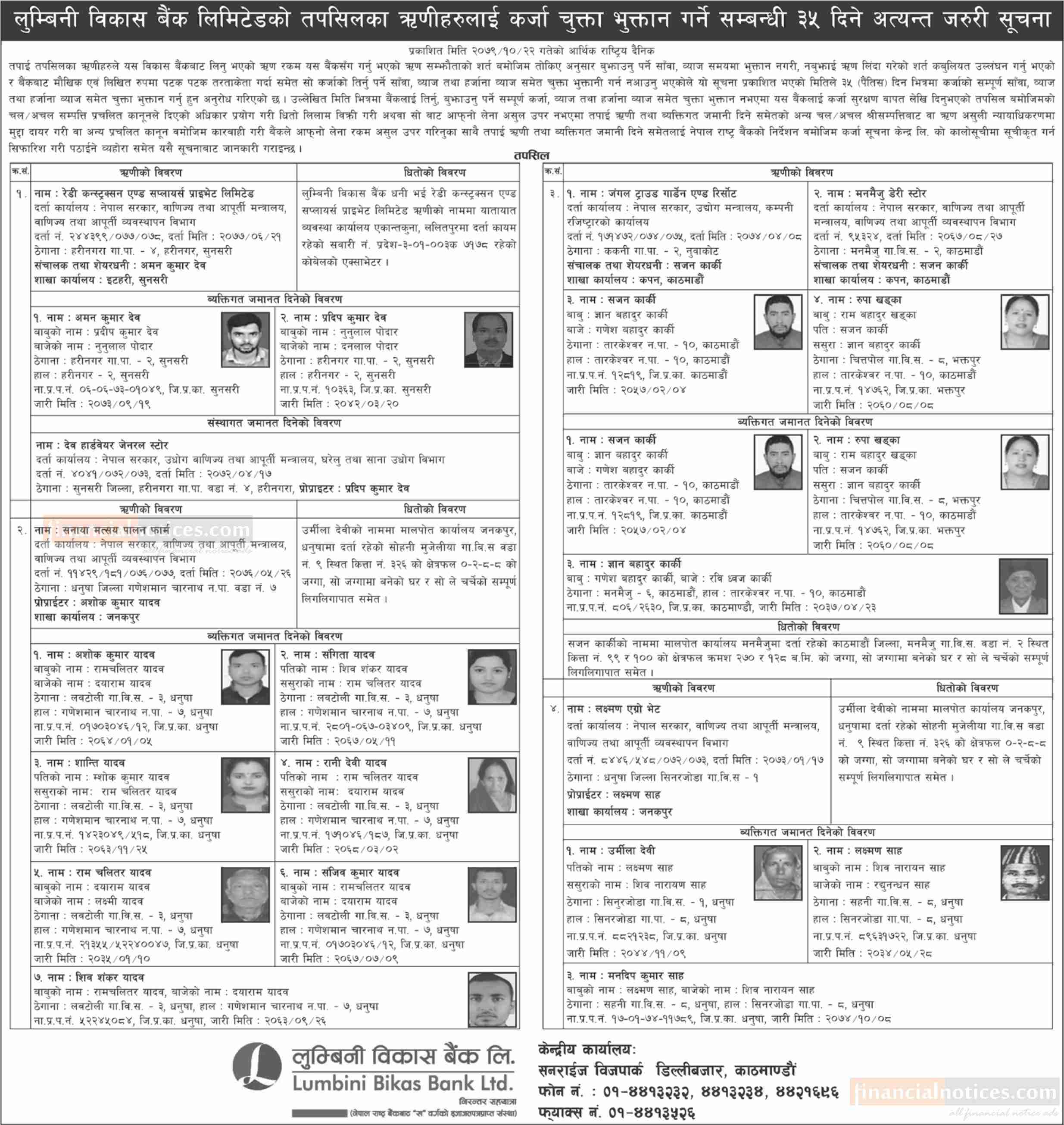 लुम्बिनी विकास बैंकका ऋणीहरुलाई कर्जा चुक्ता भुक्तान गर्ने सम्बन्धी जरुरी सूचना