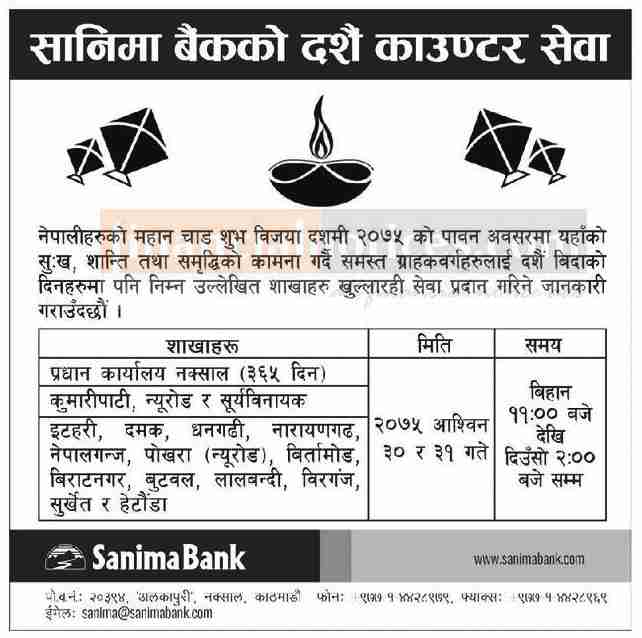 Published by Sanima Bank Limited Kantipur Newspaper on 2075-6-23