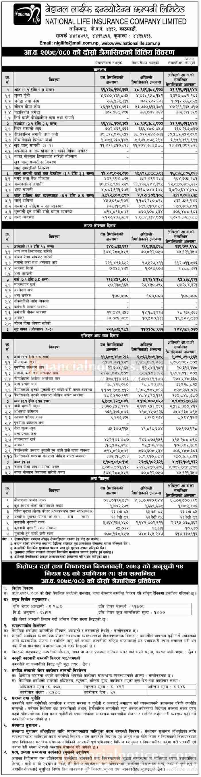 नेशनल लाइफ इन्स्योरेन्सको खुद नाफा २२ करोड ७३ लाख रुपैयाँ