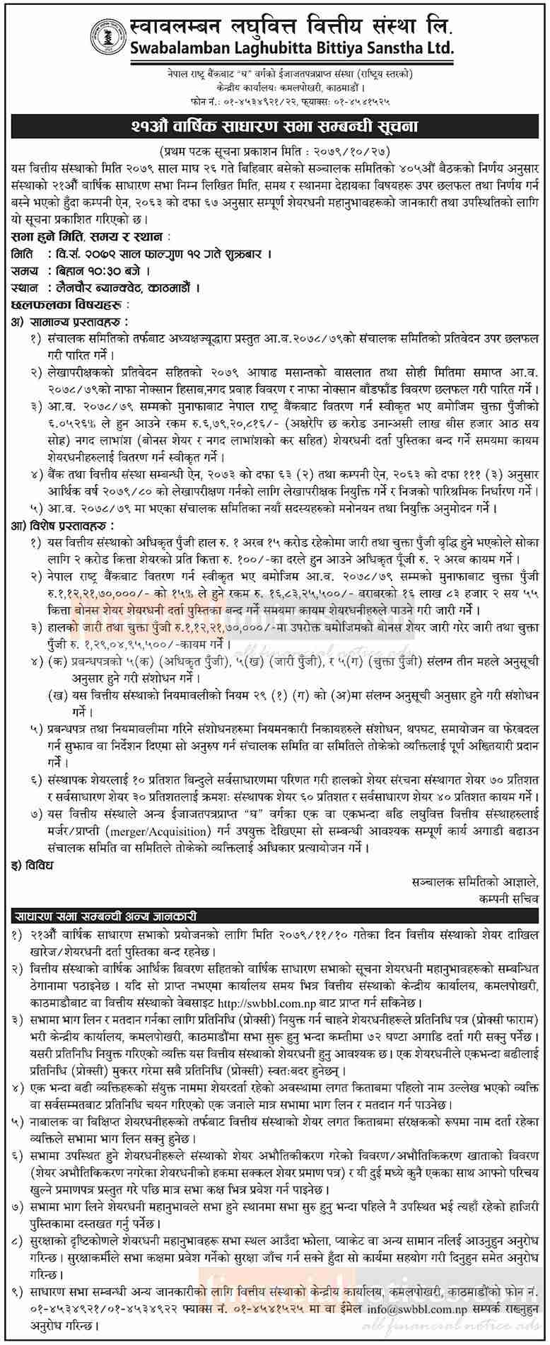 २१ औं वार्षिक साधारण सभा बस्ने सम्बन्धी सूचना