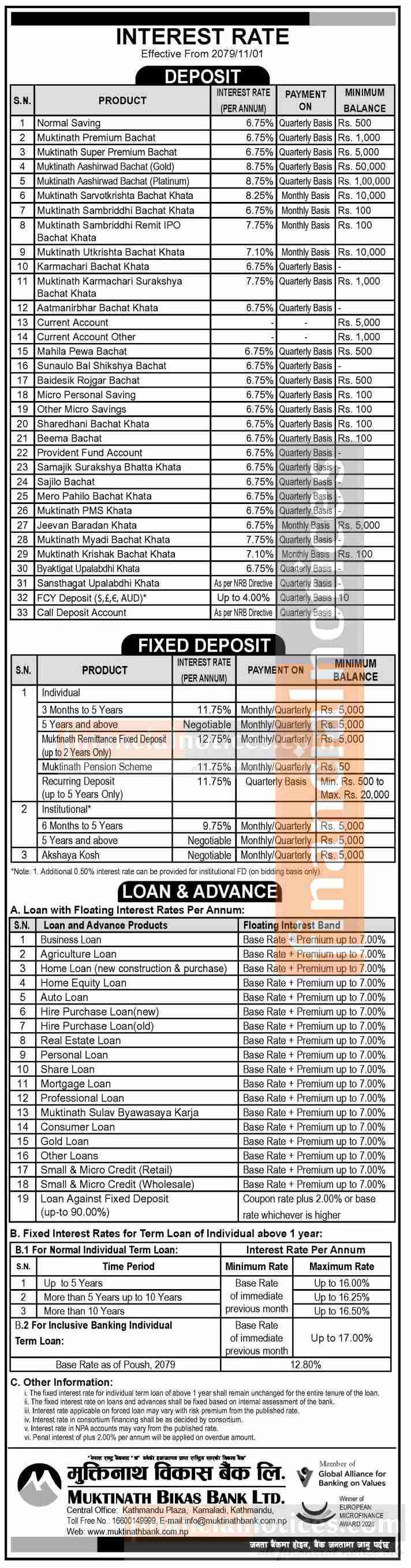 मुक्तिनाथ विकास बैंकको नयाँ ब्याजदर सार्वजानिक, हेर्नुहोस् कुन खातामा कति पुग्यो ?