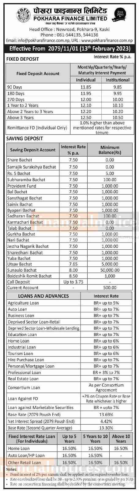 पोखरा फाइनान्सको नयाँ ब्याजदर सार्वजनिकबारे सूचना