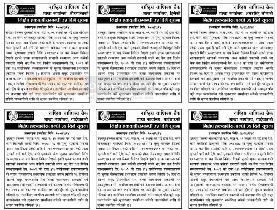 निक्षेप उपर हकदावी सम्बन्धी सूचना- RBB