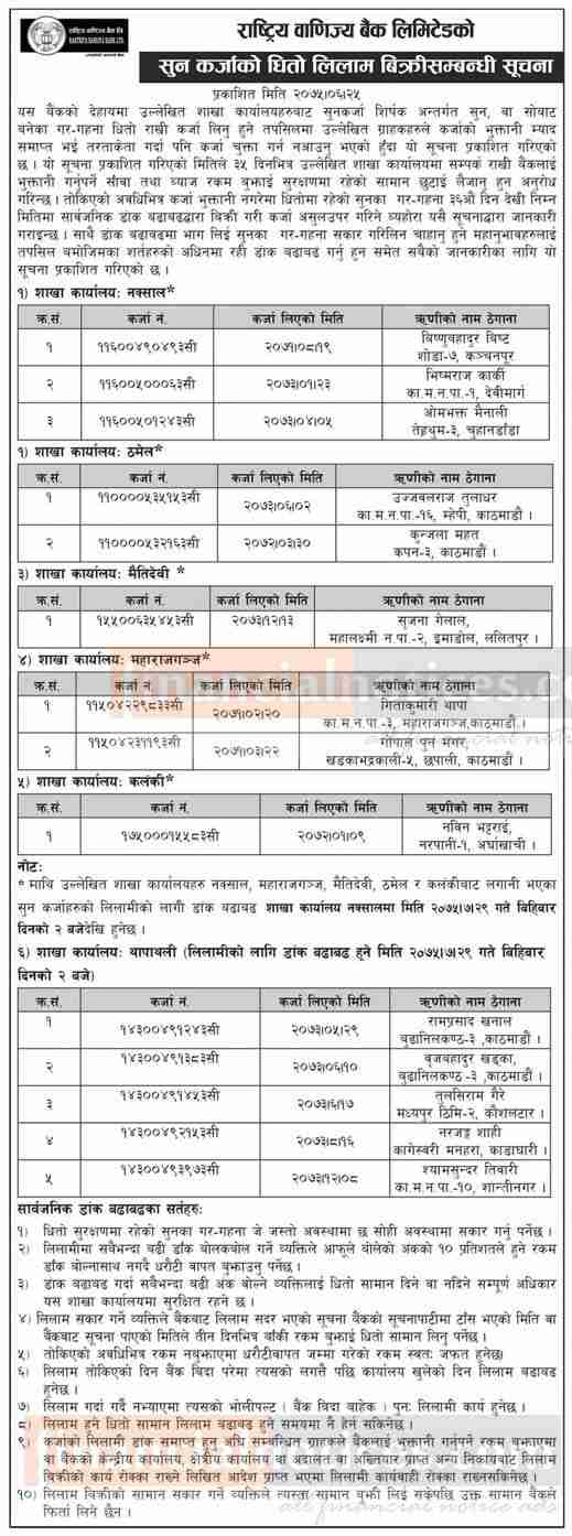 Kumari Bank Auction Notice for Non-Banking Assets at Mahendranagar, Kanchanpur -