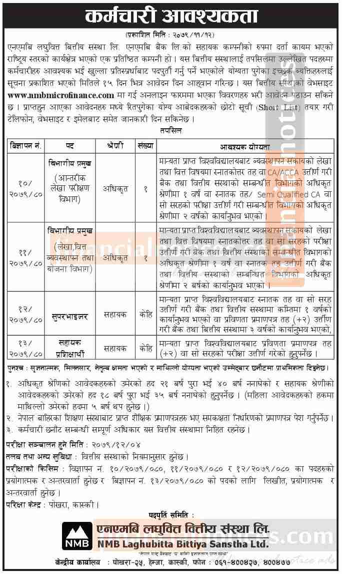एनएमबि लघुवित्तमा कर्मचारी आवश्यकता - JOB Vacancy -