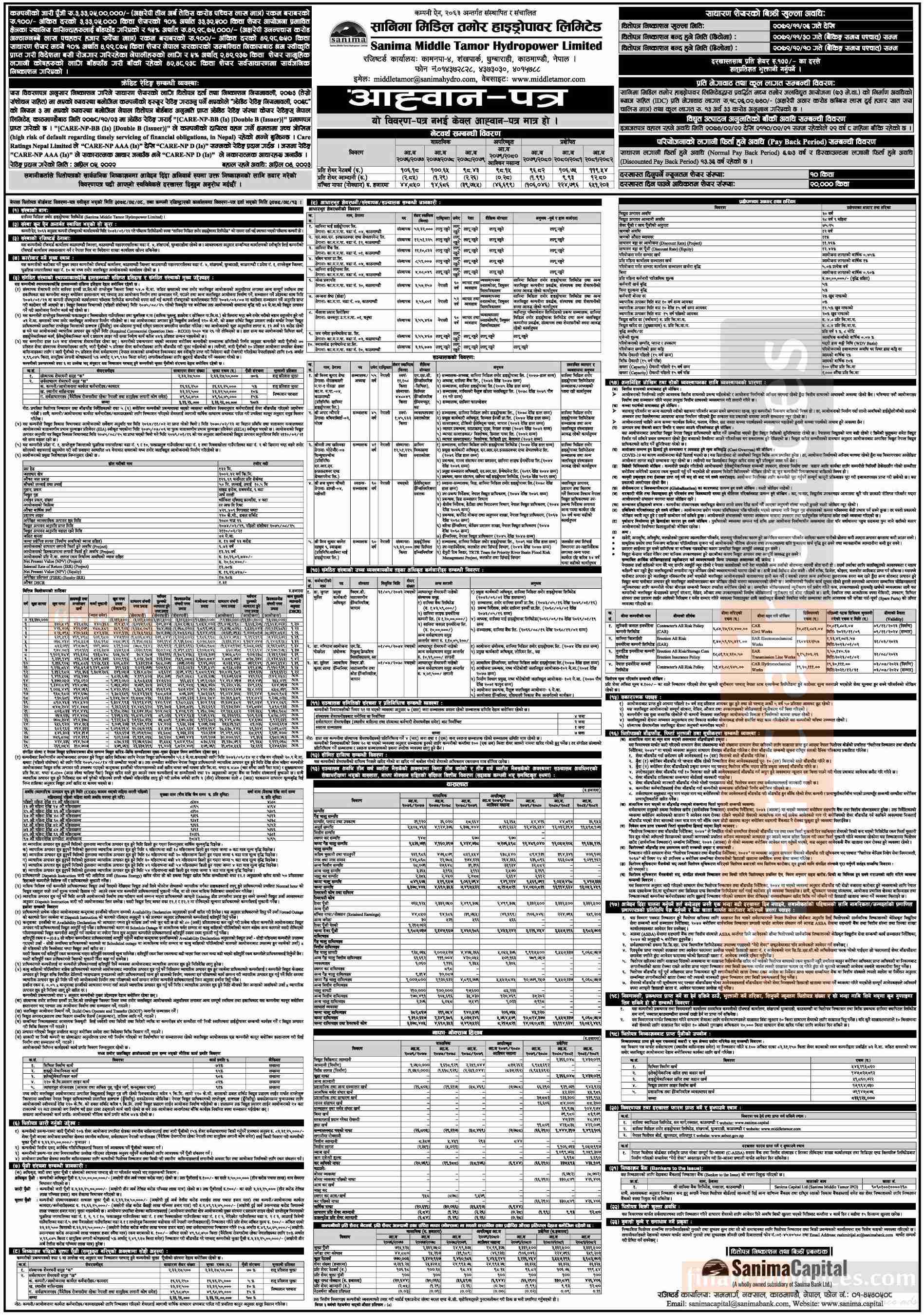 सानिमा मिडिल तमोरको फागुन २६ गतेदेखि आइपीओ निष्काशन गर्ने सम्बन्धी सूचना