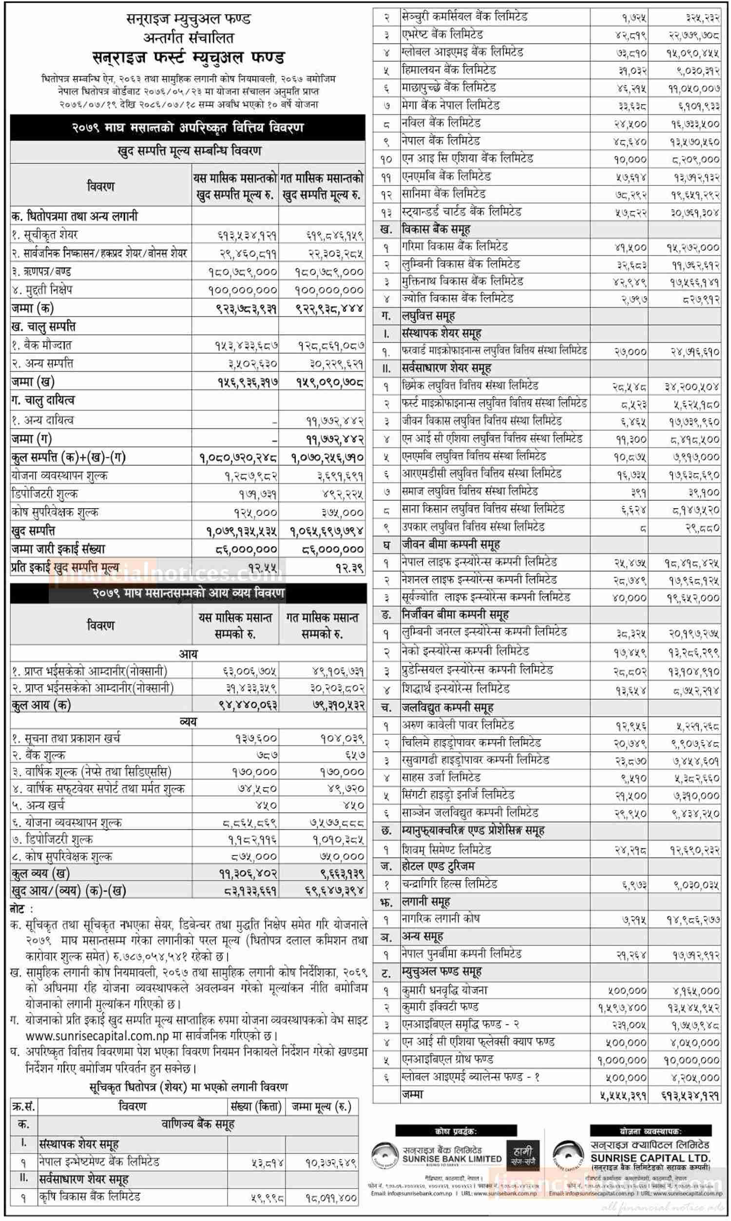 Sunrise Capital has published (Sunrise First Mutual Fund) Net Assets Value (NAV) till Magh, 2079