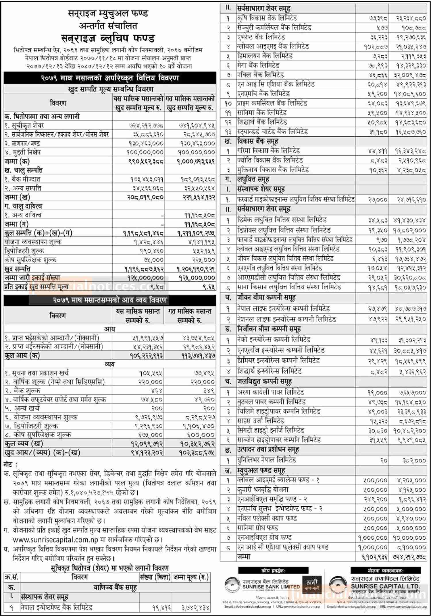 Sunrise Capital has published (Sunrise Bluechip Fund) Net Assets Value (NAV) till Magh, 2079