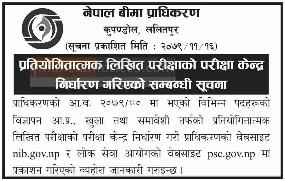 लिखित परीक्षाको परीक्षा केन्द्र निर्धारण गरिएको सम्बन्धी सूचना