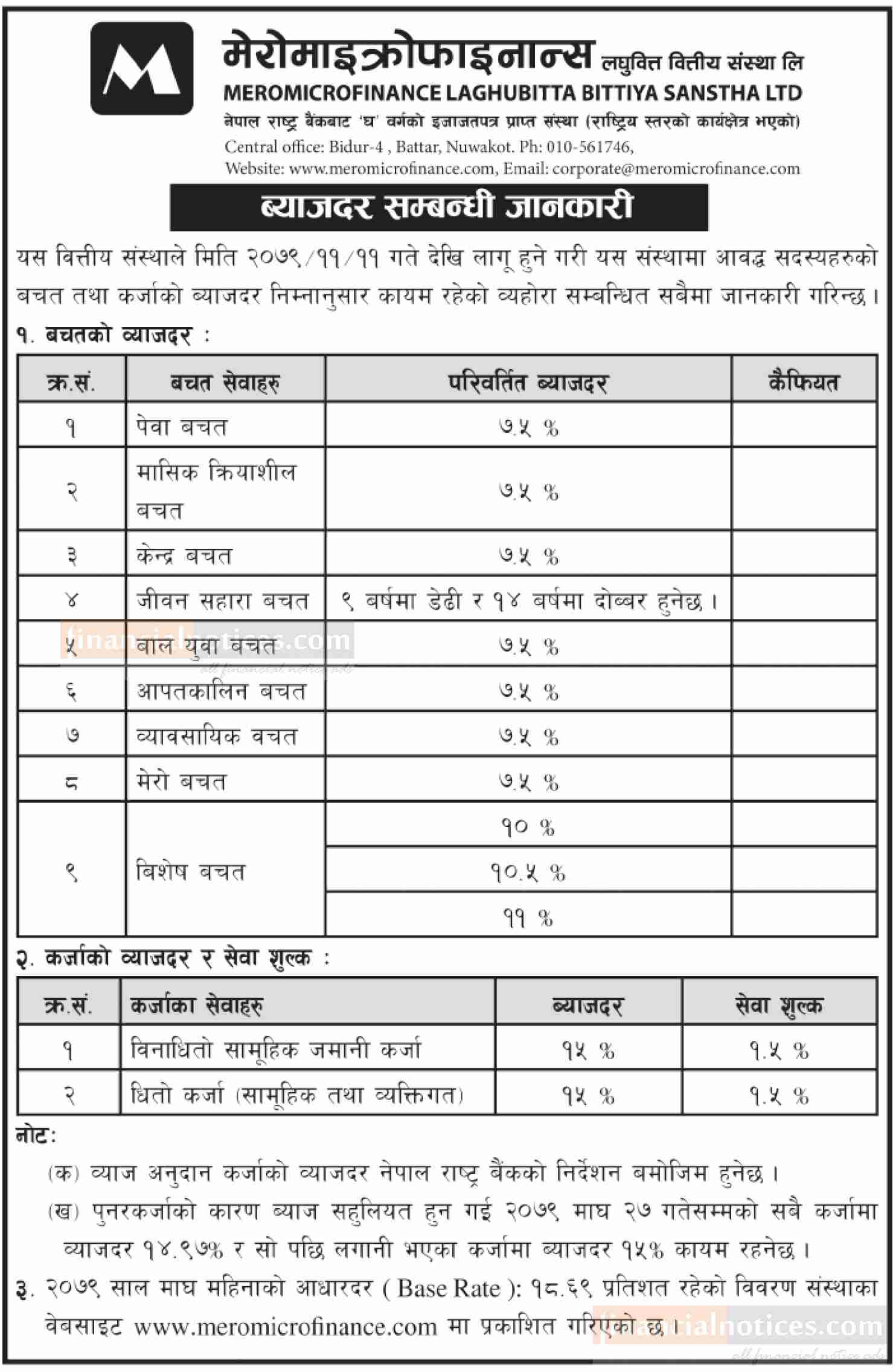 लघुवित्तको नयाँ ब्याजदर प्रकाशन सम्बन्धी सूचना