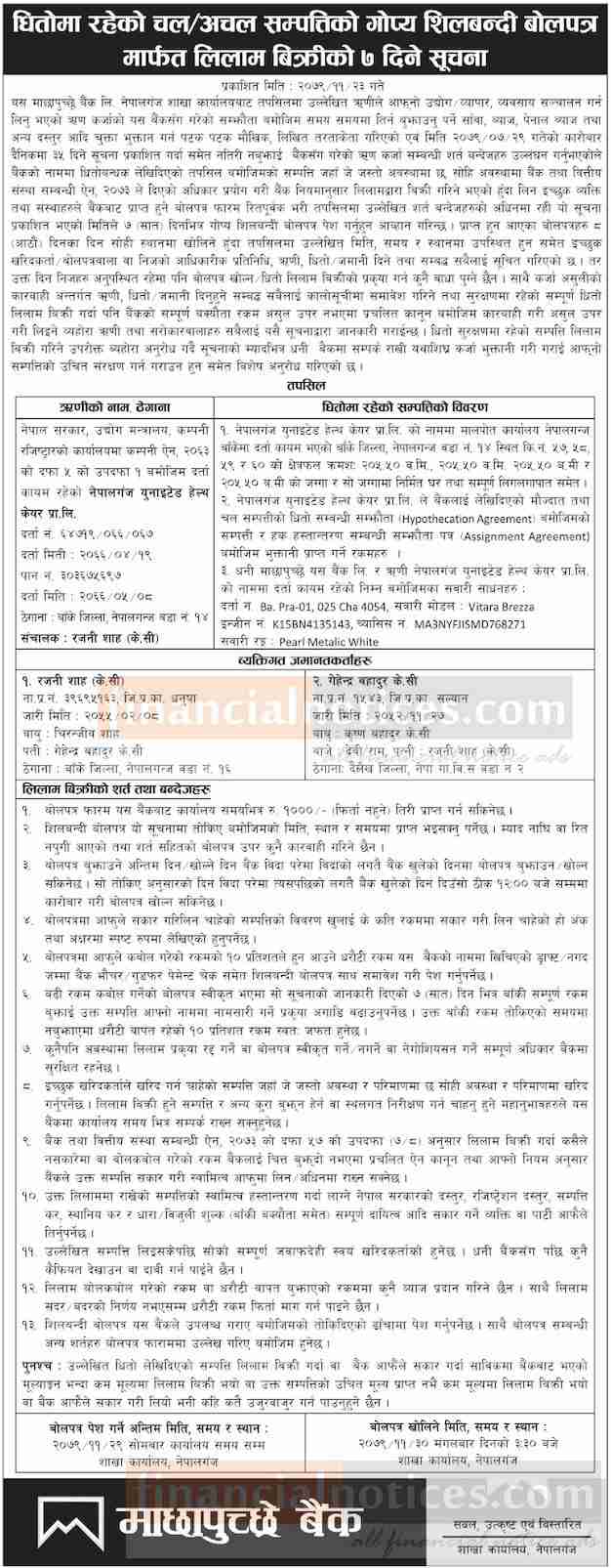 Kumari Bank Auction Notice for Non-Banking Assets at Mahendranagar, Kanchanpur -