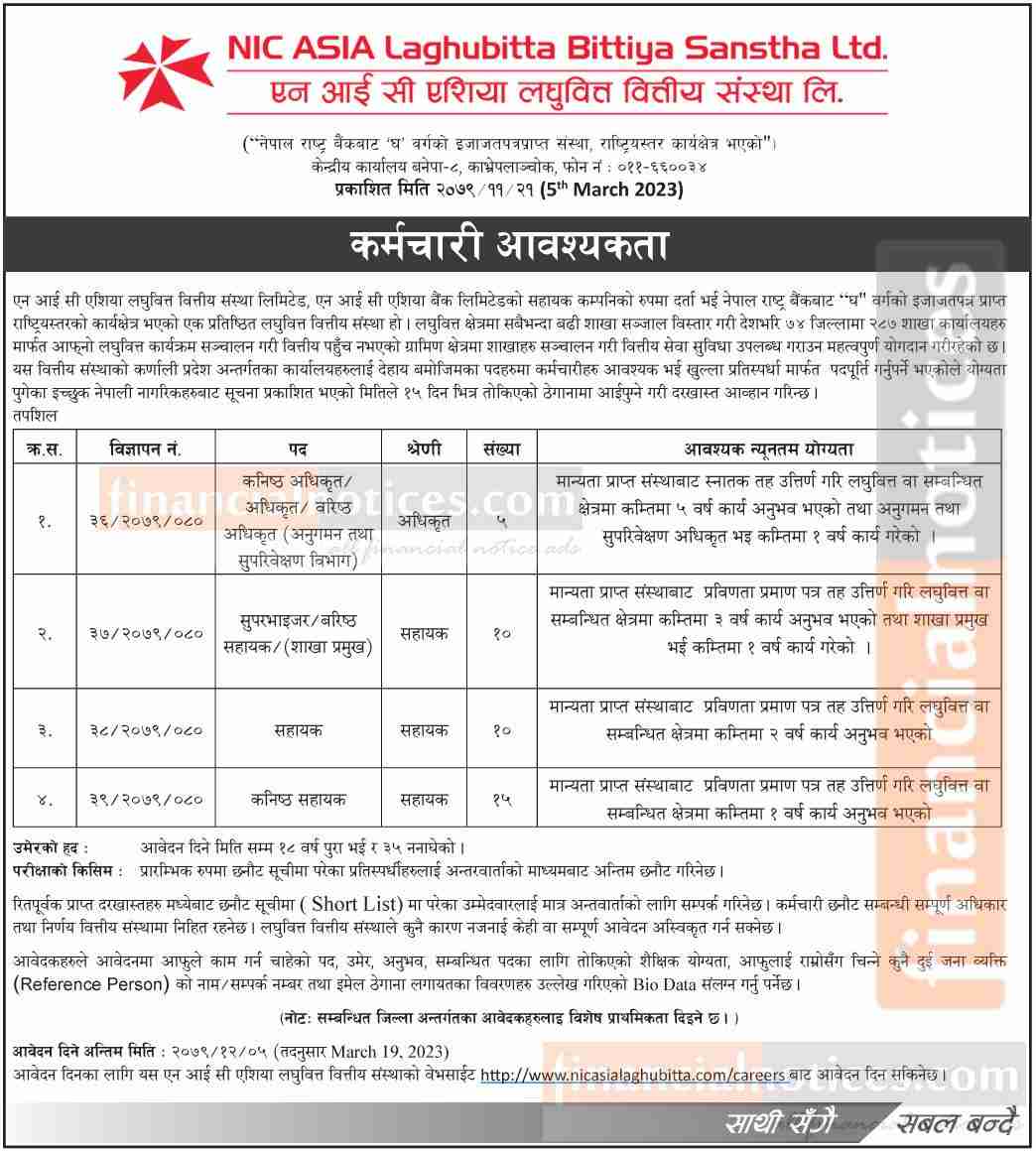 एन आई सी एशिया लघुवित्तमा धेरै संख्यामा कर्मचारी आवश्यकता